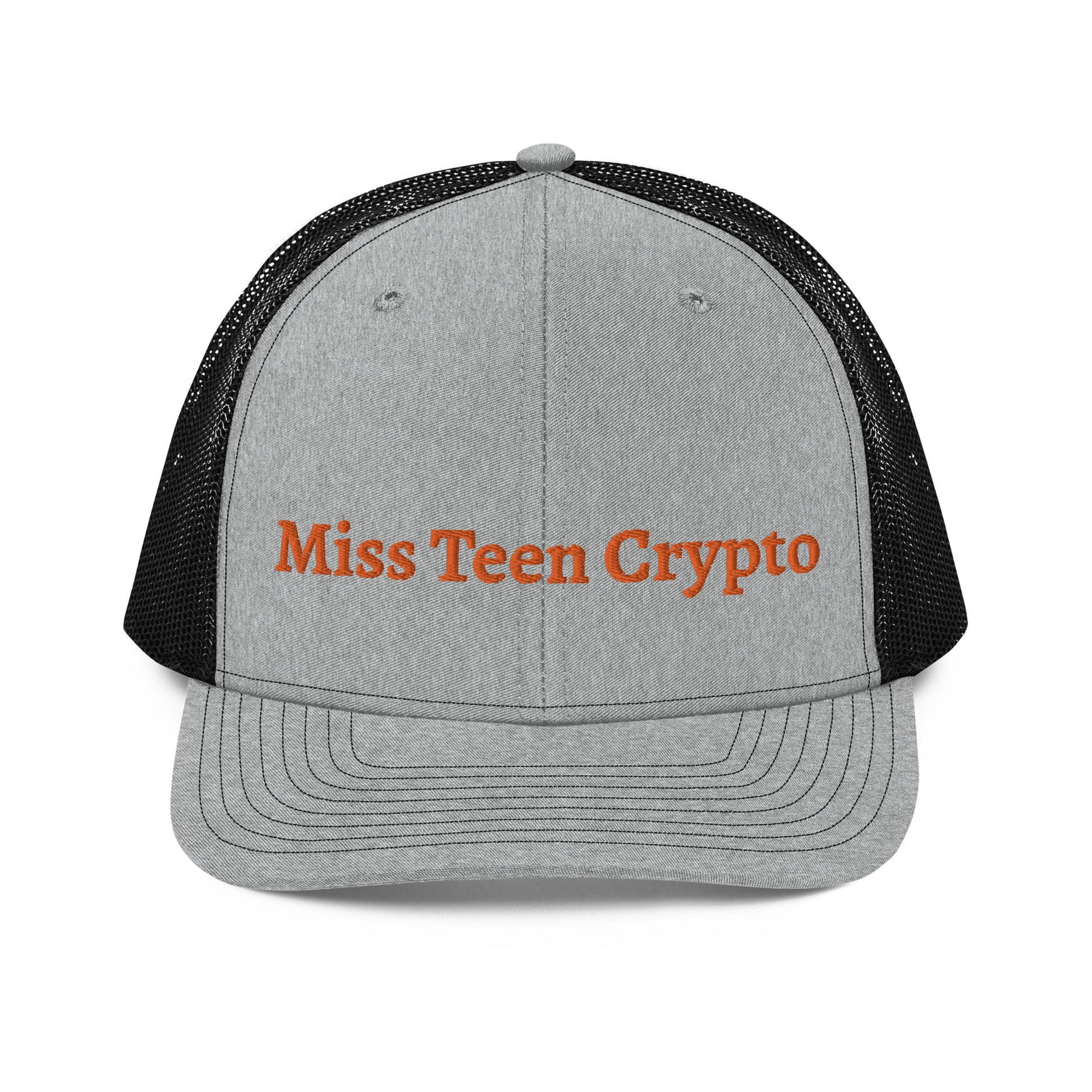 Complete your outfit with a zesty Miss Teen Crypto embroidered trucker cap—combine it with a sports tee, slacks, and comfy shoes. It has a classic structured fit, adjustable plastic snapback, and a curved visor that matches its underbill.